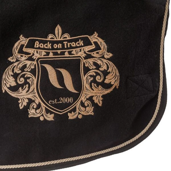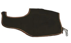 The slim fit design around the saddle prevents cold air leaks and has a cut out shape for close contact between horse and riders leg. It has luxurious champagne colored cord edging and embroidery, hook & loop closure (for easy and secure attachment), Fillet String with D-rings attachment and can be worn under or over the saddle flaps.