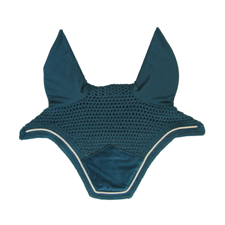 Our Fly Veil velvet is a combination of the modern American look and Kentucky Horsewear’s expertise. This fly veil is hand knitted for better durability, finished with fancy velvet details. The Fly Veil velvet protects the horse’s ears against flies while riding. The material around the ears is stretch and slim fit. The neck part is longer so it can’t slip. The Fly Veil velvet does not have a visible logo, therefore rider or sponsors can embroider their own logo. Hand washing only.