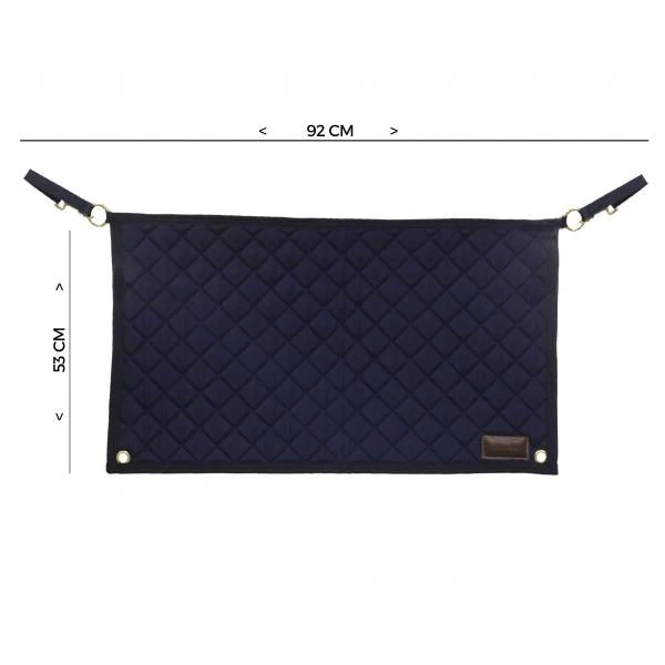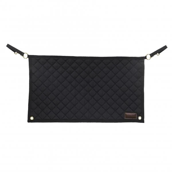The Kentucky Stable Guard enables your horse to put his head outside of the stall to relax. This Stable Guard has two reinforced gold coloured rings in the upper corners with a nylon strap with a snap hook to attach to the stable. There are two more reinforced rings in the bottom corners to attach the Stable Guard. The diamond quilting pattern and the artificial leather Kentucky logo create a fancy look. This Stable Guard is a perfect match to our Head Protector and Stable Curtain. The Stable Guard is made out of 600D high tenacity polyester and is machine washable at 30°, no dryer.