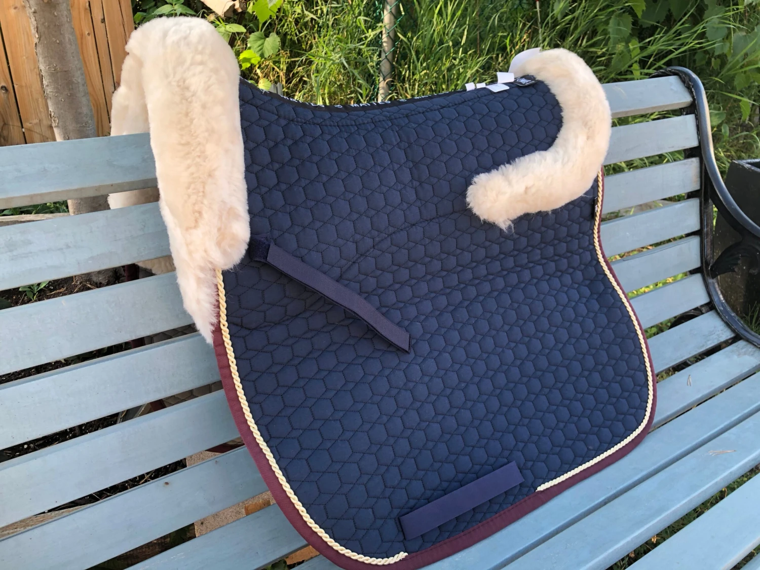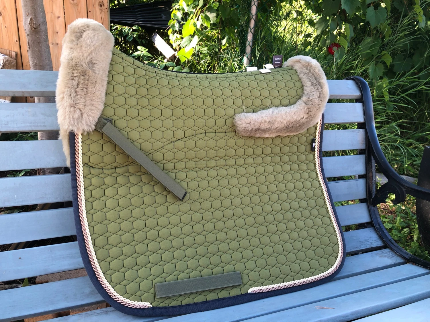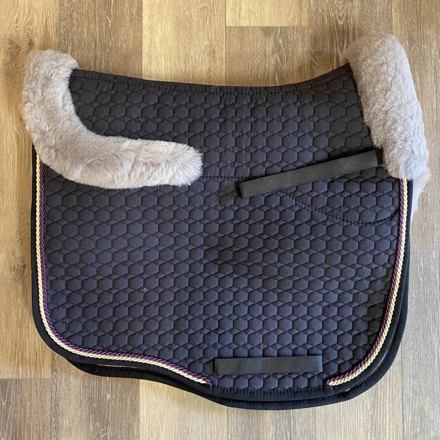 Beautiful one-of a-kind Mattes Dressage saddle pad! Square with a built in sheepskin half pad size large.
