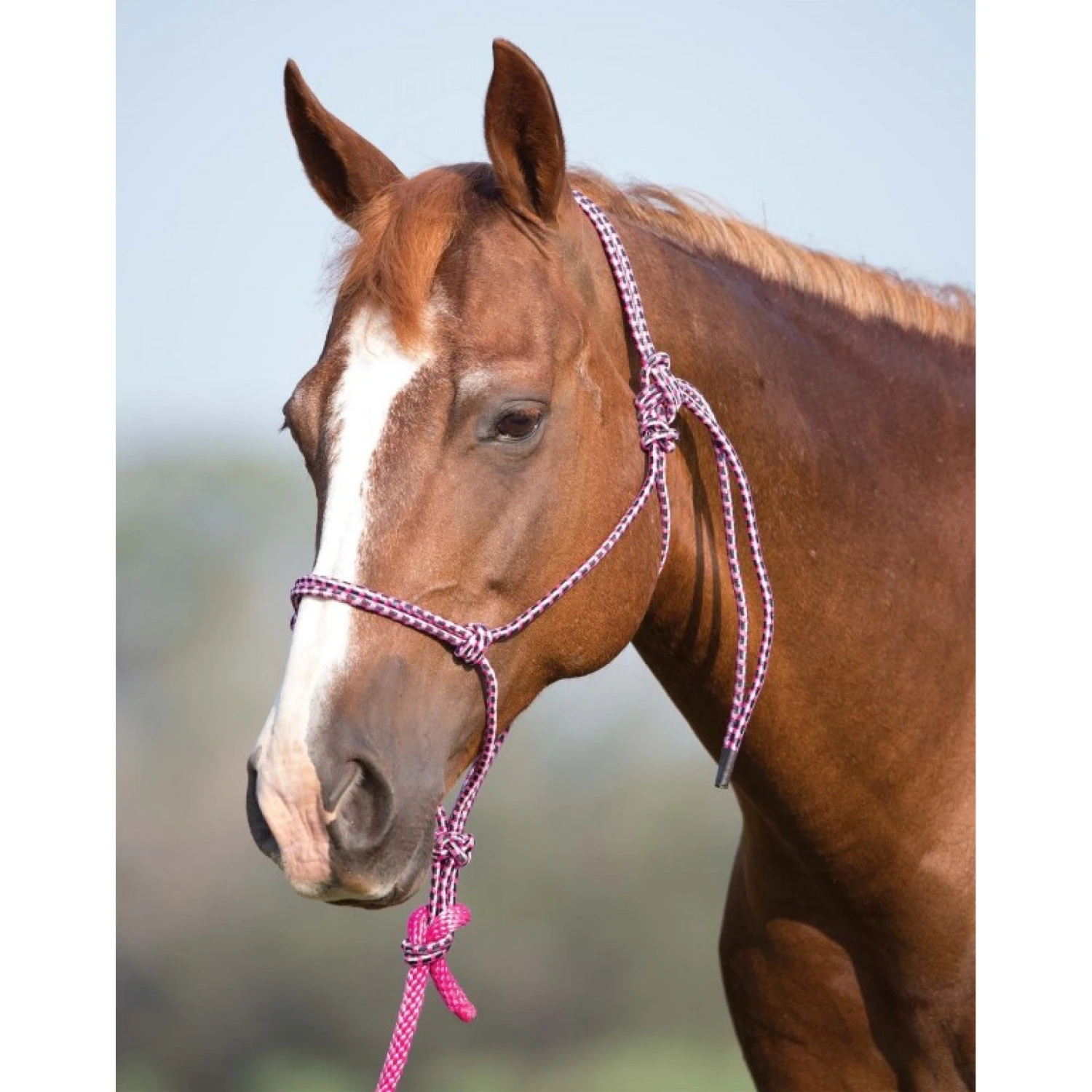 Our top selling halter and lead combination. Made from a continuous piece of rot resistant 1/4″ two toned diamond braided poly rope with a 5/8″ x 8″ detachable poly lead. Washable with no hardware to break make this a must have buy.