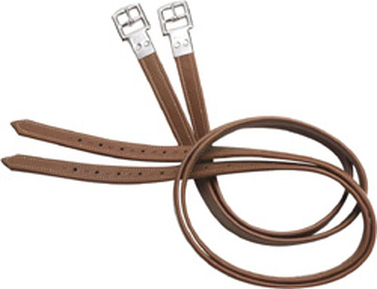 Non-stretch stirrup leathers. Available with white or tobacco stitching as standard. Flat buckle for increased rider comfort under the leg.